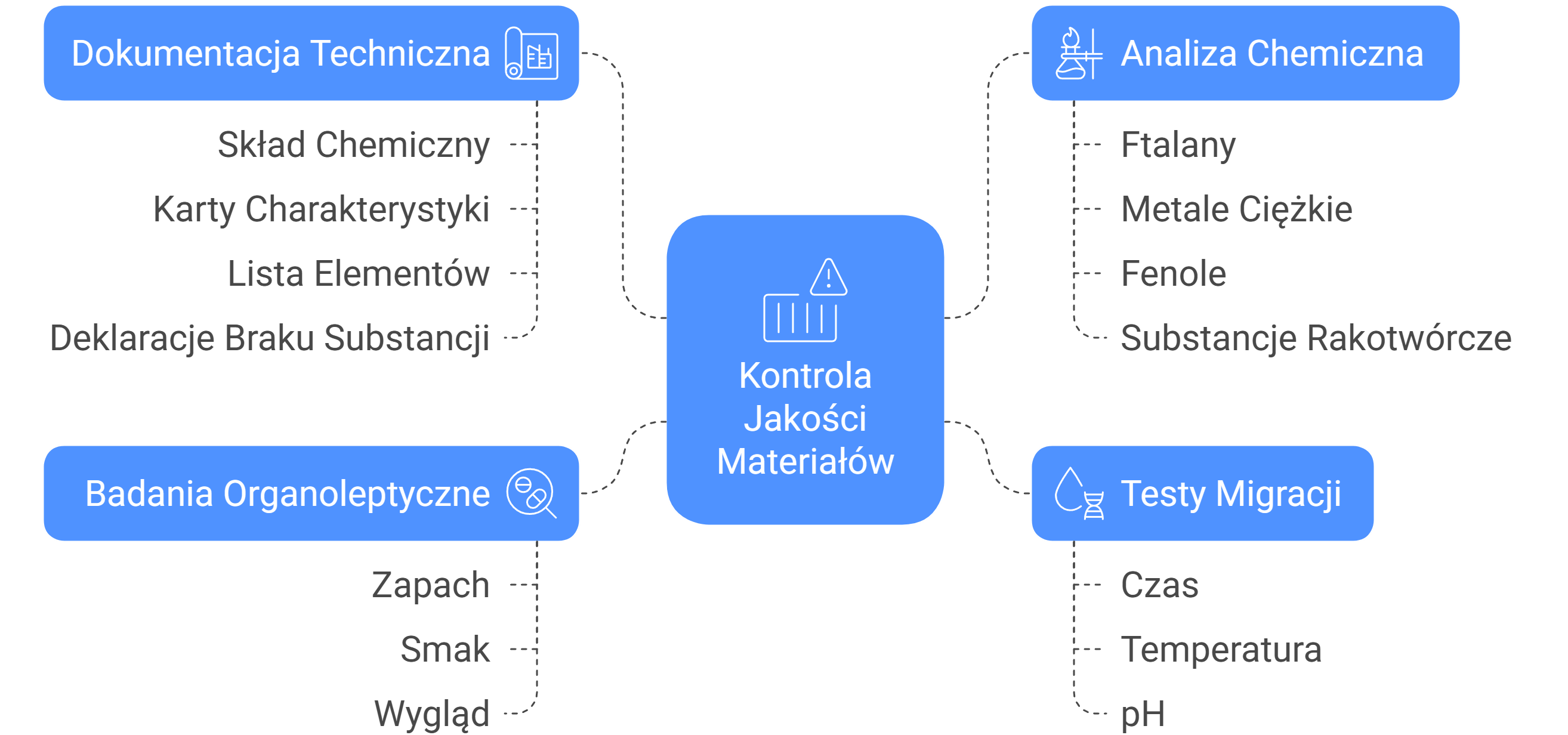 Uzyskanie atestu PZH wymaga szczegółowej oceny jakości materiałów mających kontakt z wodą pitną lub żywnością. Proces ten obejmuje m.in. analizę dokumentacji technicznej, badania chemiczne i organoleptyczne oraz testy migracji, co zostało przedstawione na poniższej grafice.