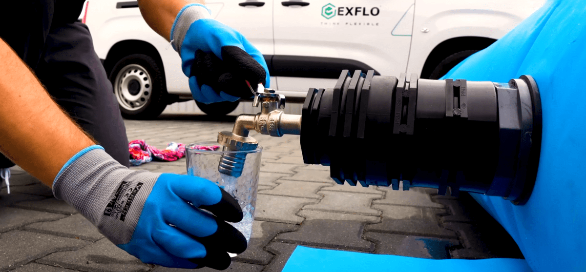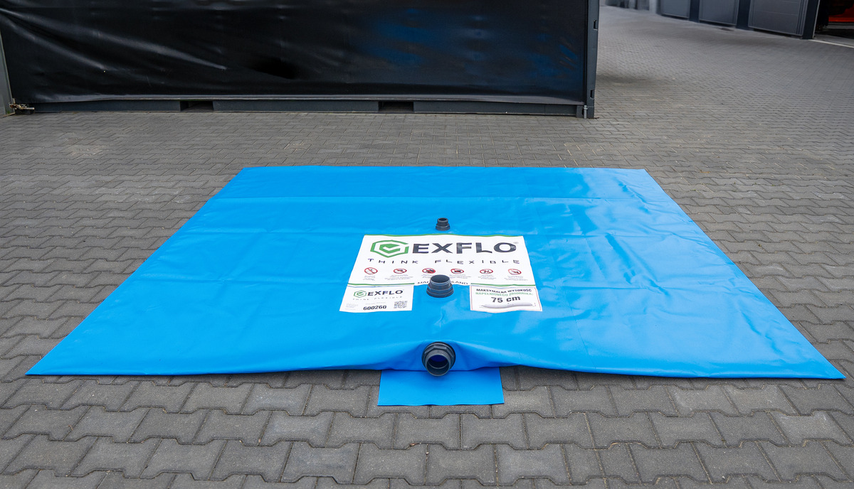 Materiał jest wolny od ftalanów i bisfenolu A, co gwarantuje bezpieczne gromadzenie każdej cieczy przeznaczonej do spożycia. Dzięki technologii zgrzewania HF, zbiorniki Exflo są trwałe, szczelne i mogą być szybko złożone oraz rozłożone bez użycia narzędzi.