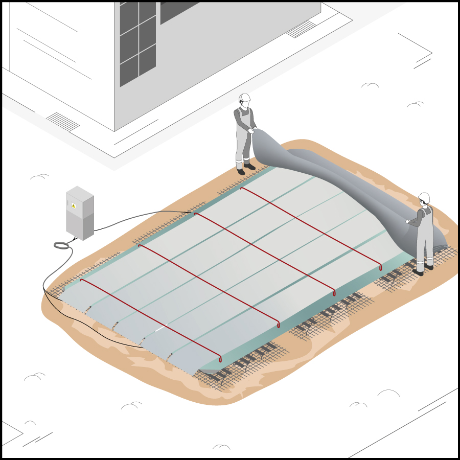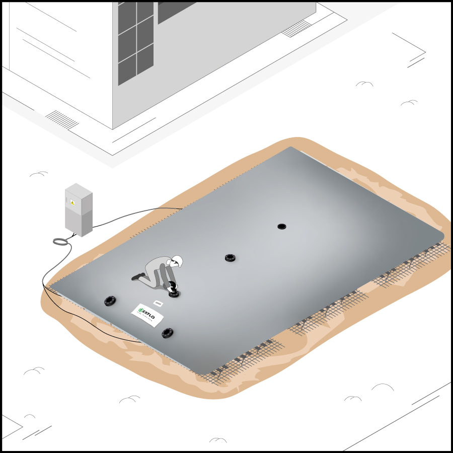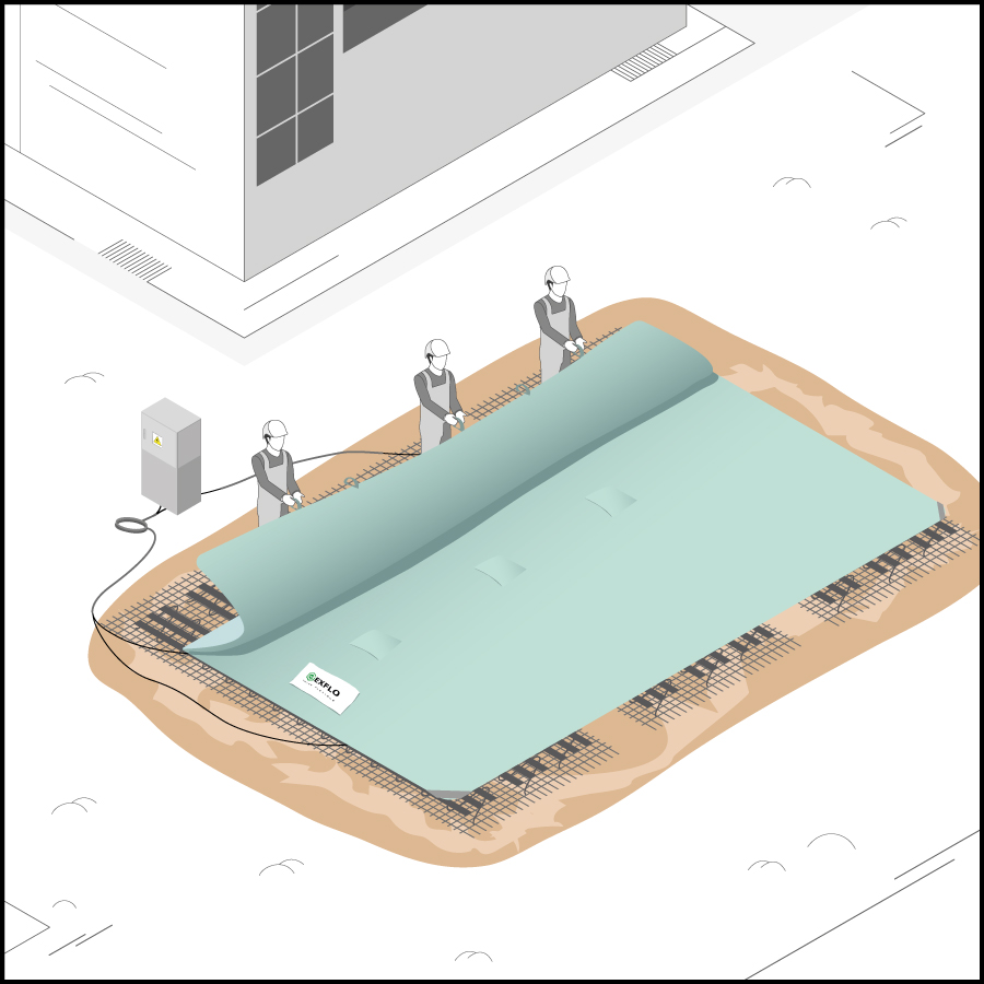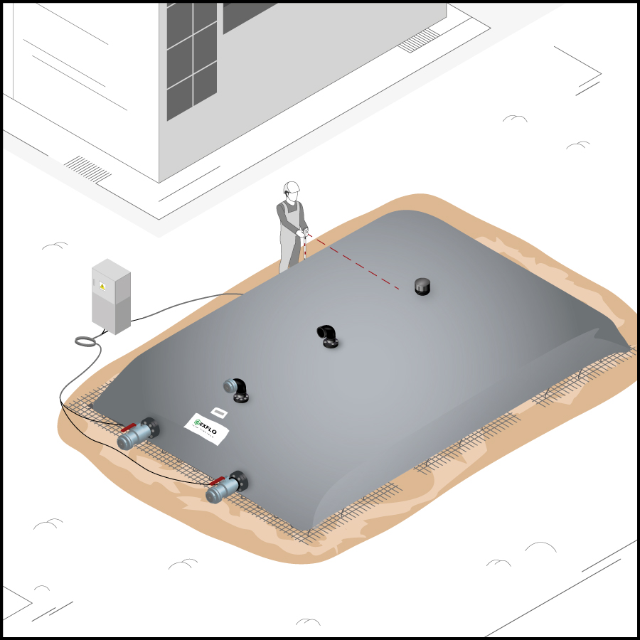 Montaż zbiornika przeciwpożarowego można opisać w ośmiu krokach: stworzenie i wypoziomowanie podsypki piaskowej, zamontowanie skrzynki rozdzielczej, rozłożenie mat grzewczych i zbiornika, zamontowanie izolacji oraz okrycia wierzchniego, wkręcenie przyłączy, a na końcu napełnienie zbiornika do odpowiedniej wysokości.