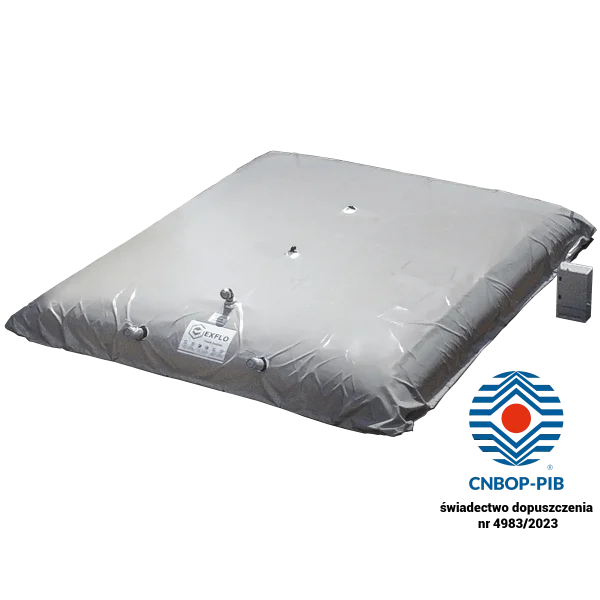Zbiorniki przeciwpożarowe nie wymagają skomplikowanych prac budowlanych i przygotowawczych. Oferowany przez firmę Exflo system elektrycznych mat zabezpiecza wodę w zbiorniku i układzie przed zamarznięciem, nawet w groźnych warunkach zimowych. Zbiorniki elastyczne Exflo jako wodne zbiorniki przeciwpożarowe mogą być cennym wsparciem również w sezonach występowania susz i podwyższonego zagrożenia pożarem. Po okresie użytkowania w kilkadziesiąt minut mogą zostać złożone i przygotowane do zmagazynowania. Ich cecha mobilności również przyda się na czas remontu zbiornika stacjonarnego, kiedy to zbiorniki Exflo mogą stać się tymczasowym buforem wody. Posiadają świadectwo dopuszczenia CNBOP.