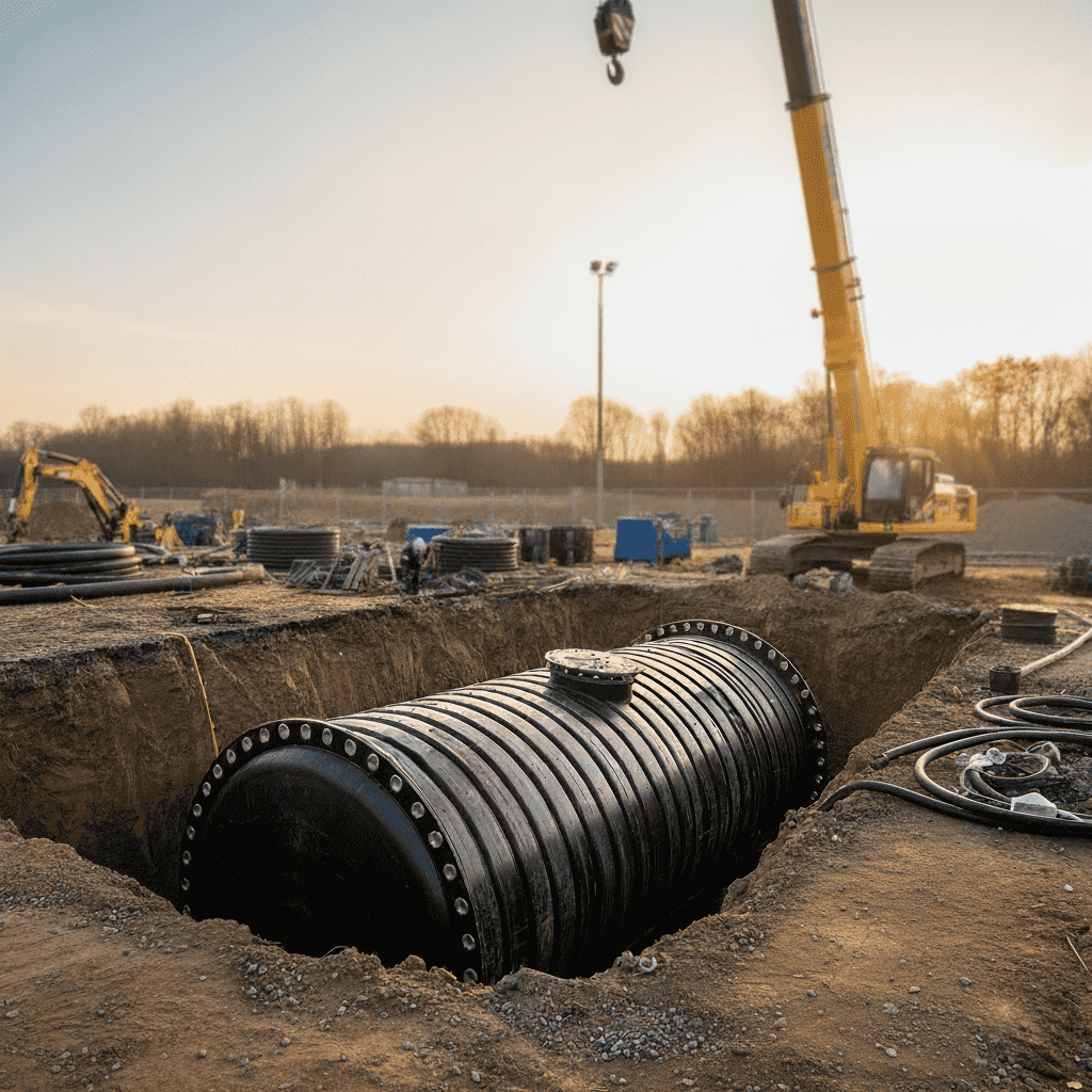 | Podziemne zbiorniki przeciwpożarowe | Oszczędność miejsca, ochrona wody | Obiekty miejskie, magazynowe |